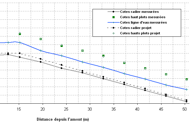 - Cotes des niveaux d’eau : profil en long ligne d'eau (PLE)
