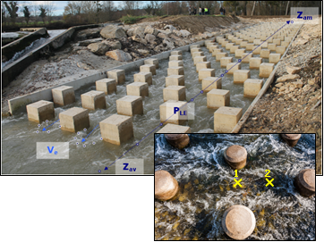 - Rugosité de fond : type de matériaux, hauteur émergente et agencement (orientation et espacement)