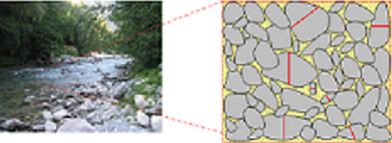 | La détermination du diamètre pour un type de substrat s’effectue en tenant compte du diamètre (en mm) perpendiculaire au plus grand axe de l’élément considéré. On s’attachera à analyser le pourcentage de surface occupée suivant la taille des éléments ainsi que leur organisation (déterminant du point de vue biologique : frayères) |