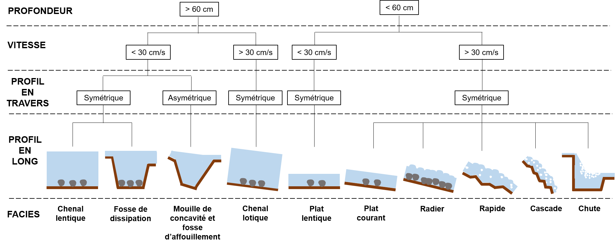 Accueil Referentiel Technique Domaine Aquatique Morphologie TYPOLOGIE DES FACIES D’ECOULEMENT Clé de détermination pour des largeurs de cours d’eau allant jusqu’à 100 m (d’après JR.Malavoi et Y.Souchon, 2002) Fiche Méthodologique TYPOLOGIE DES FACIES D’ECOULEMENT Clé de détermination pour des largeurs de cours d’eau allant jusqu’à 100 m (d’après JR.Malavoi et Y.Souchon, 2002) Contenu